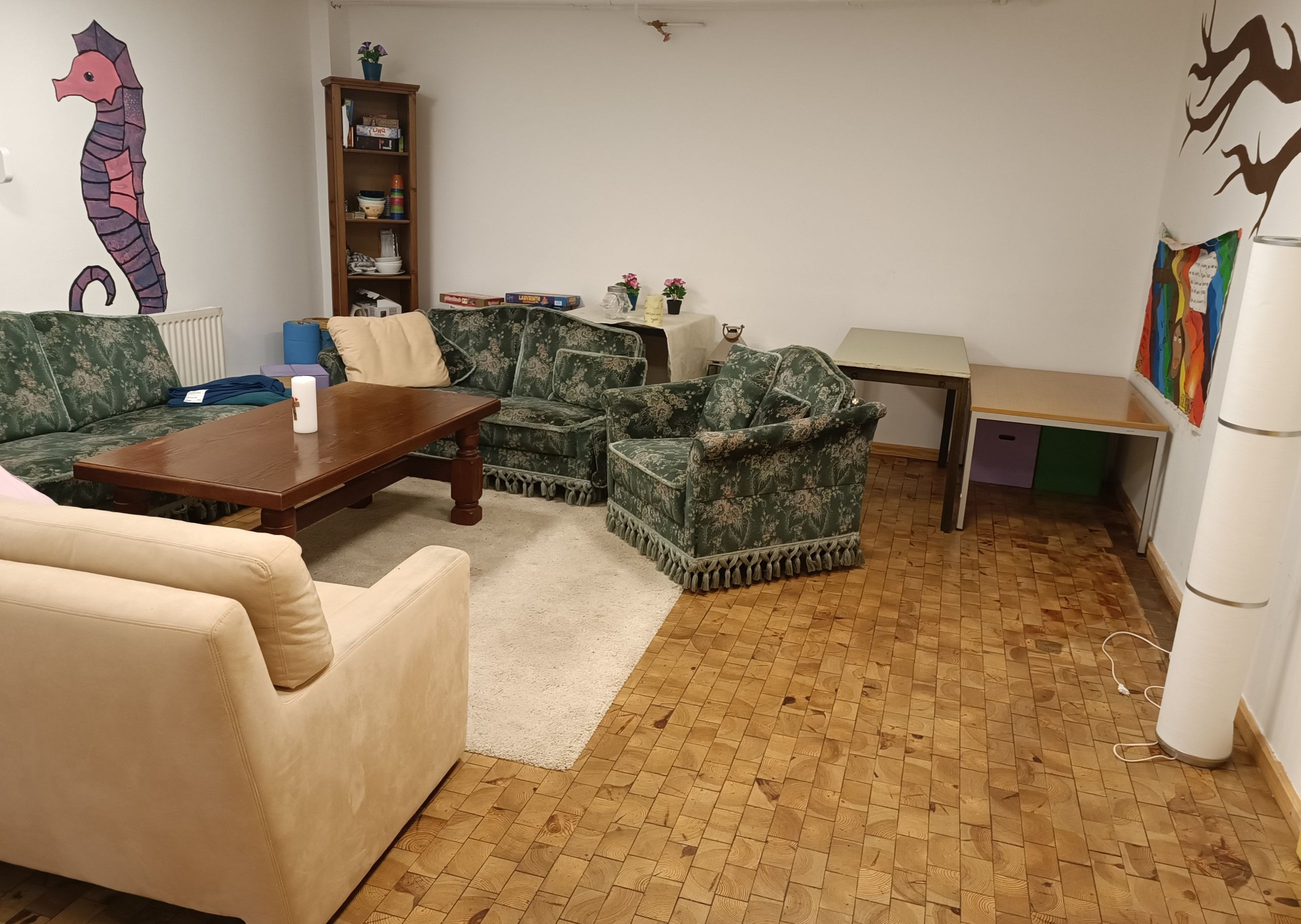 Unsere Kirche hat drei Räume, die perfekt für Gesellschaften bis zu 90 Personen geeignet sind. Bei Bedarf können Sie auch unsere Küche mieten, um Ihre Speisen aufzuwärmen.